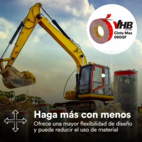 La cinta adhesiva doble cara 3M™ VHB™ Max-060GF combina la innovación tecnológica de 3M con la máxima resistencia de unión en su categoría, lo que la convierte en la solución ideal para ingenieros, fabricantes y profesionales que buscan una alternativa fiable a las fijaciones mecánicas tradicionales.