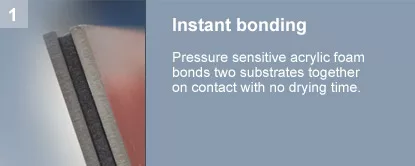 - Puede sustituir a fijaciones mecánicas (remaches, puntos de soldadura, tornillos) o adhesivos líquidos, eliminando la necesidad de taladrado, lijado, rectificado, atornillado, soldado y limpieza