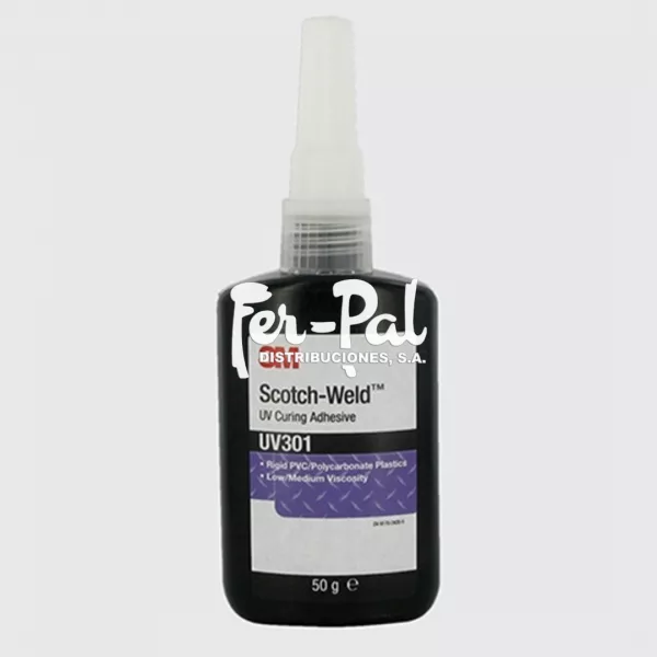 Adhesivo UV 301 de viscosidad media/ baja para unir PVC rígido y policarbonato.
